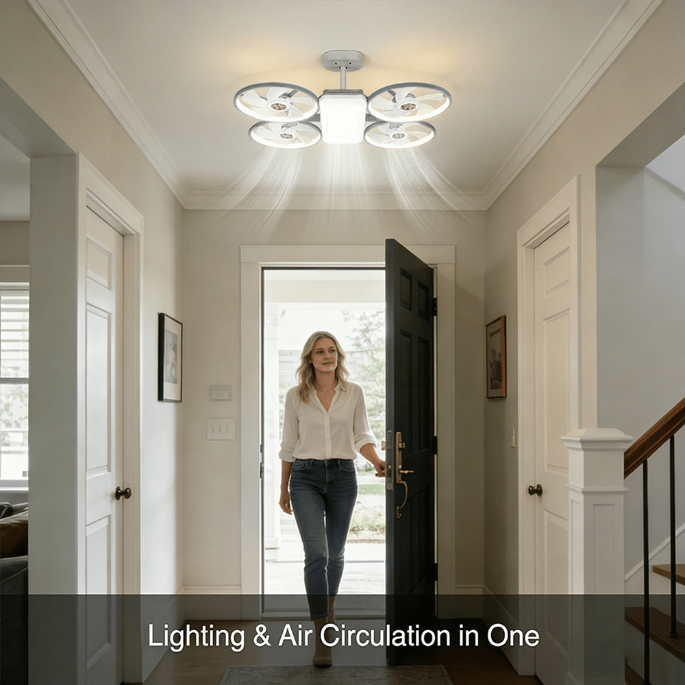 Upgrade your living space with this innovative drone-shaped LED ceiling fan light. Combining modern lighting with refreshing airflow, this multifunctional fixture brightens your room while helping circulate air for a more comfortable environment.