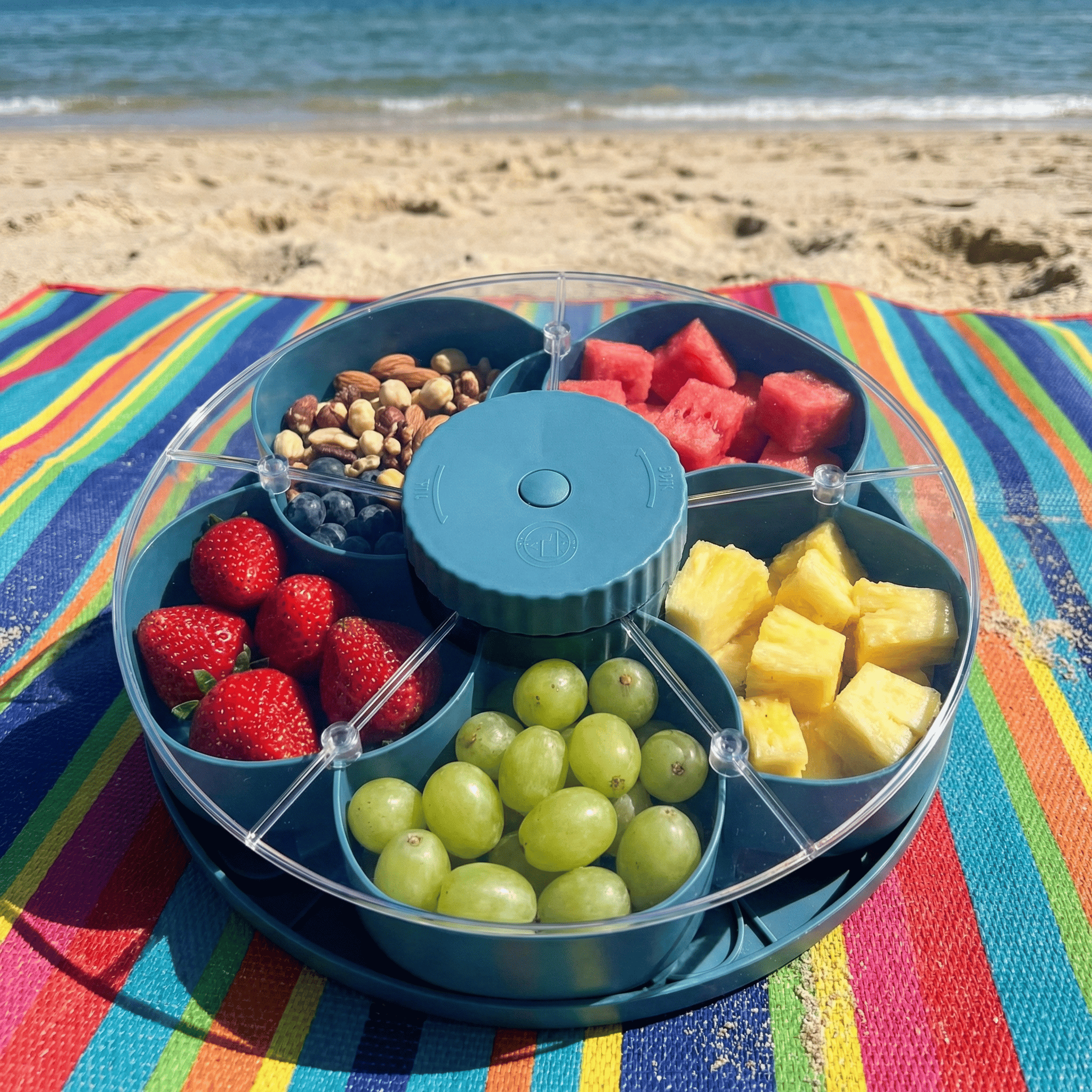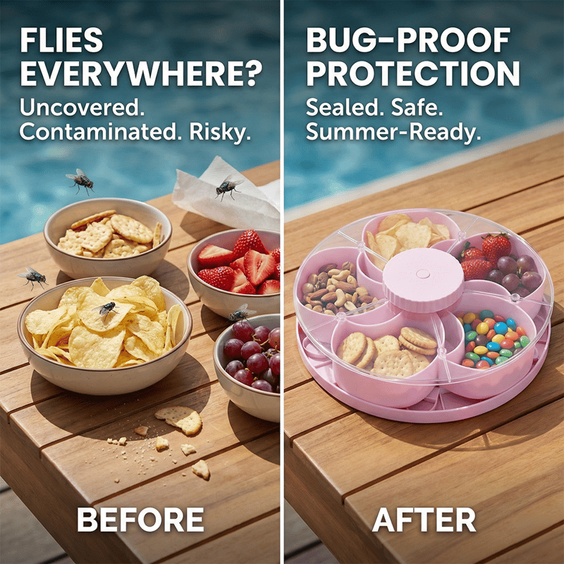 Upgrade your summer gatherings with the Rotating Snack Storage Tray — specifically engineered with a 360° rotating shield to keep your snacks crisp, fresh, and 100% protected from outdoor elements. Perfect for pool days, backyard BBQs, and beach trips where food safety comes first. ☀️🏖️
