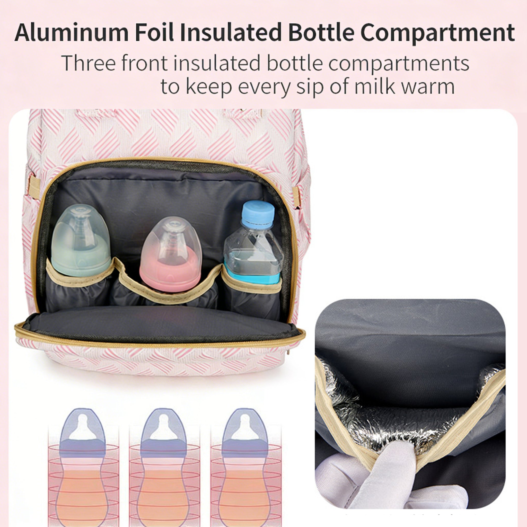 "I love the insulated bottle pockets — they actually keep milk warm! The USB charging port is super convenient when I'm out all day."